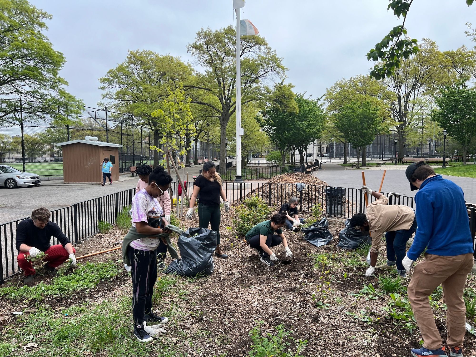 PlayCo staff and "Resters" cleaning up St. John's Park