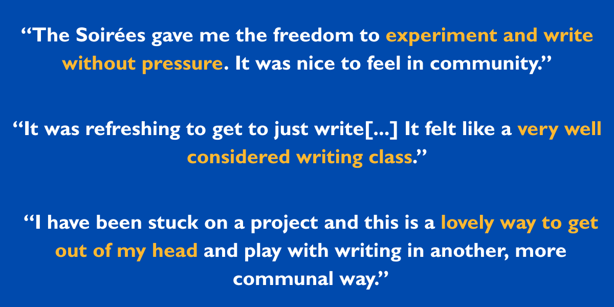 Starting in July, join us virtually and at our PlayCo offices for Summer Script Soirées, a series of free writing workshops that invite playwrights at any experience level to convene, converse, and create in community with one another.